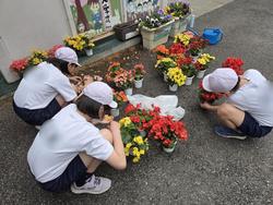 休み時間に、黙々と花壇の手入れをしている栽培委員に出会いました。