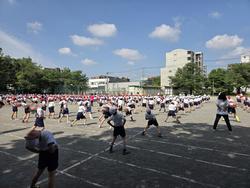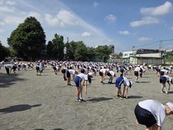 集団行動や本校オリジナルの自校体操の確認をしました。
