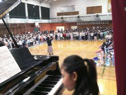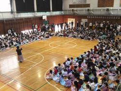 今朝の音楽朝会は保護者の皆様にも公開し、