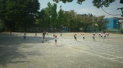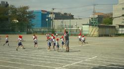 1組の体育では、まずは教室でハンドサインの練習。実際に外に出て、上手に並ぶことができました。スキップをして広がったあと、笛の合図で再び集まり素早く整列!メリハリがついていていいですね。