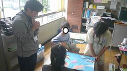 絵を少し離れてみることで、見え方が変わってきますね。友達と話し合いながら工夫を重ねていきます。