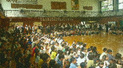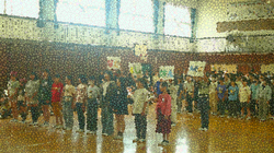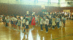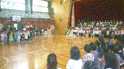 今日は1年生を迎える会が開かれました。今年度から1年生の保護者が参観できるようになり、多くの保護者に見守られながら入場です。